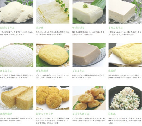 とうふを作る工程の中でできる豆乳、おから。これらから作ったおからコロッケや味付けおから、その他とうふが劇的に旨くなる「まぼろしのつゆ」などご用意しております。“毎日でも飽きない”よう豆腐の種類も多くご用意。おつまみやお菓子にもできる楽しいメニューもございます。すべて国産、地産地消の理念に適う食材からつくっております、ぜひ一度ご賞味ください