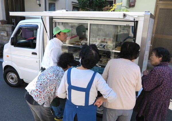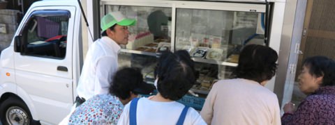 ご近所に店舗が無い、車でのお買い物が大変といった声をいただき移動販売も行っております。ルートでの販売を行っており遠くは京都まで移動販売を行っております。こちらも工場から冷蔵車での直送で鮮度を保った商品をお買い求めいただけます。