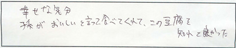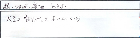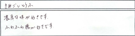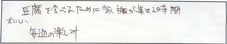 いつもあたたかいお言葉・ご感想ありがとうございます。皆さまからいただく声が美味しいとうふを提供する原動力となっております